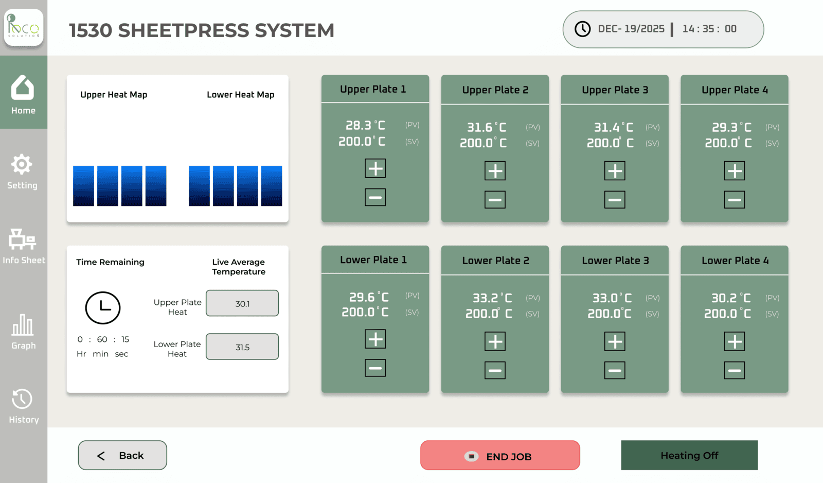 | 64-1530 HPCP | 35 kg raw material → 12 mm sheet in 20 min | ~1 hr | 64 kW (3 Phase, 380/415V) |
